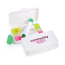 Unique wax crayon highlighter set made with long lasting wax, with a 5 year shelf life. The pink, yellow, and green highlighters are supplied in a white plastic case.