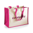 Shopper bag in natural and pink jute, for use in hand or over the shoulder.